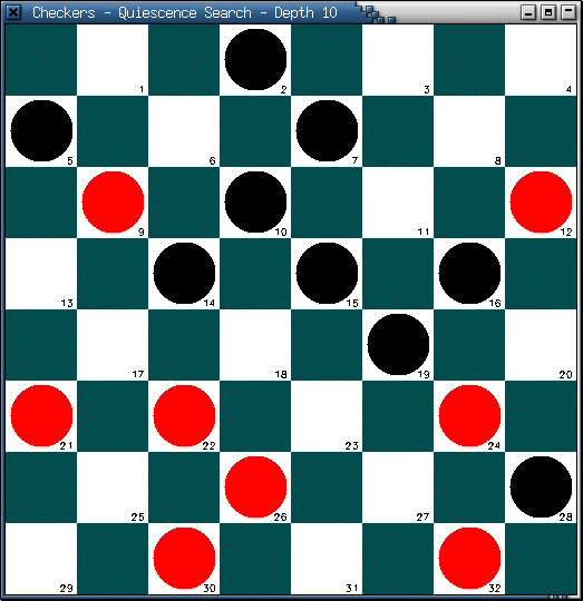 Project Description: A Checkers program that allows user vs. computer play as well as user vs. user play. Quiescence search with a search depth of 10 was used as the most difficult setting.