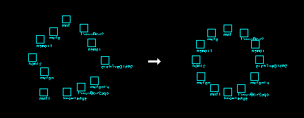 It would also be useful for users to have access to snap-to grids or tools for cleaning up spatial arrangements. A user could approximately arrange a set of files, and then select them as a group and apply a "grid-ize" or "circle-ize" tool. Below are depictions of these two operations: