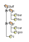 user has expanded the x and y folders: