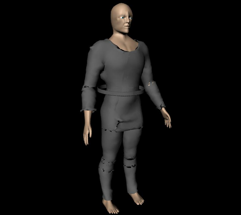 Character with clothing! This didn't work very well during the animation though so I had to abandon it.