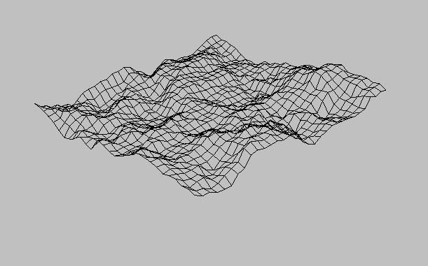 First I generated a random (fractal) surface profile by filtering a three-dimensional white noise by a power law-like filter in space and a gaussian-like filter in time. One realization of such a surface looks like this: