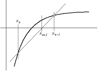 Intuitively, x_{n+1} is chosen as the point where the tangent at
