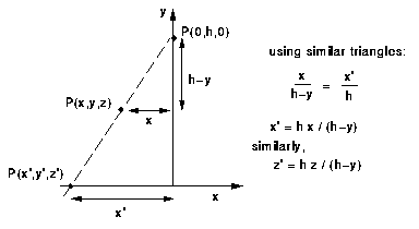 [ x' ] [ h 0 0 0 ] [ x ] [ y' ] = [ 0 0 0 0 ] [ y ] [ z' ] [ 0 0 h 0 ] [ z ] [ w' ] [ 0 -1 0 h ] [ 1 ]