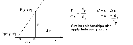 [ x' ] [ 1 -dx/dy 0 0 ] [ x ] [ y' ] = [ 0 0 0 0 ] [ y ] [ z' ] [ 0 -dz/dy 0 0 ] [ z ] [ 1 ] [ 0 0 0 1 ] [ 1 ]