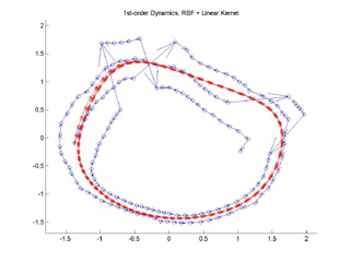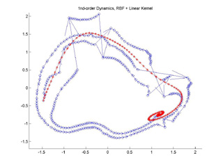 GPDM with a linear+RBF kernel. The nonlinear kernel produces a limit