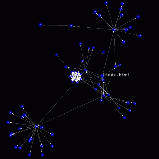 The graph visualized below corresponds to my website's structure. Scripts written in Bourne shell and Perl scan my website and produce a plain text description of the corresponding graph.