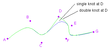Control vertices can be repeated in order to allow for reduced geometric continuity at the join points.