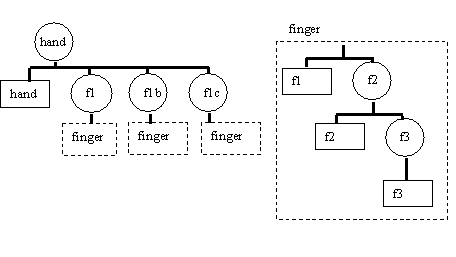 draw hand pushMatrix() M=M*Tf1a draw_finger() popMatrix() pushMatrix() M=M*Tf1b draw_finger() popMatrix() pushMatrix() M=M*Tf1c draw_finger() popMatrix() draw_finger() {