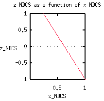 What does this look like in the image plane? Let's determine z_VCS as a function of x_NDCS. With this we can point at the image and ask What is the real distance of this point?