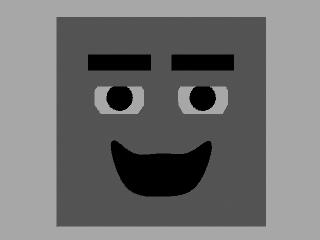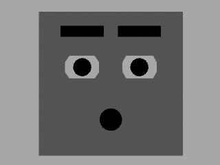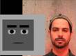 To create a training database of data, we recorded an actor (yours truly) making some interesting facial expressions, attempting to cover all the expressive muscle groups in the face. We simultaneously recorded facial motion capture data from the actor's face and a frontal video shot. The video was then used to animate Boxy, a box-like character presented in this book. He is a very basic character, but capable of a wide range of expression, as shown below.