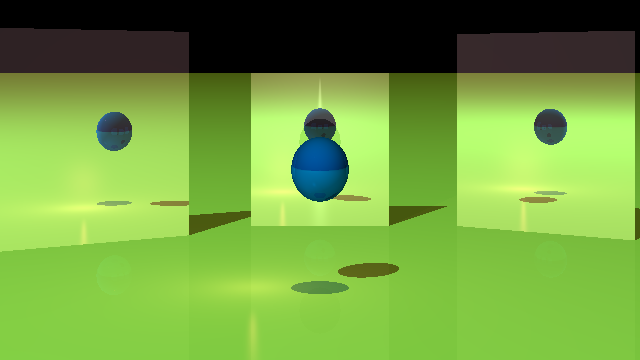 In the piece, you can see that reflections turn slightly greener the more nested they are :) .