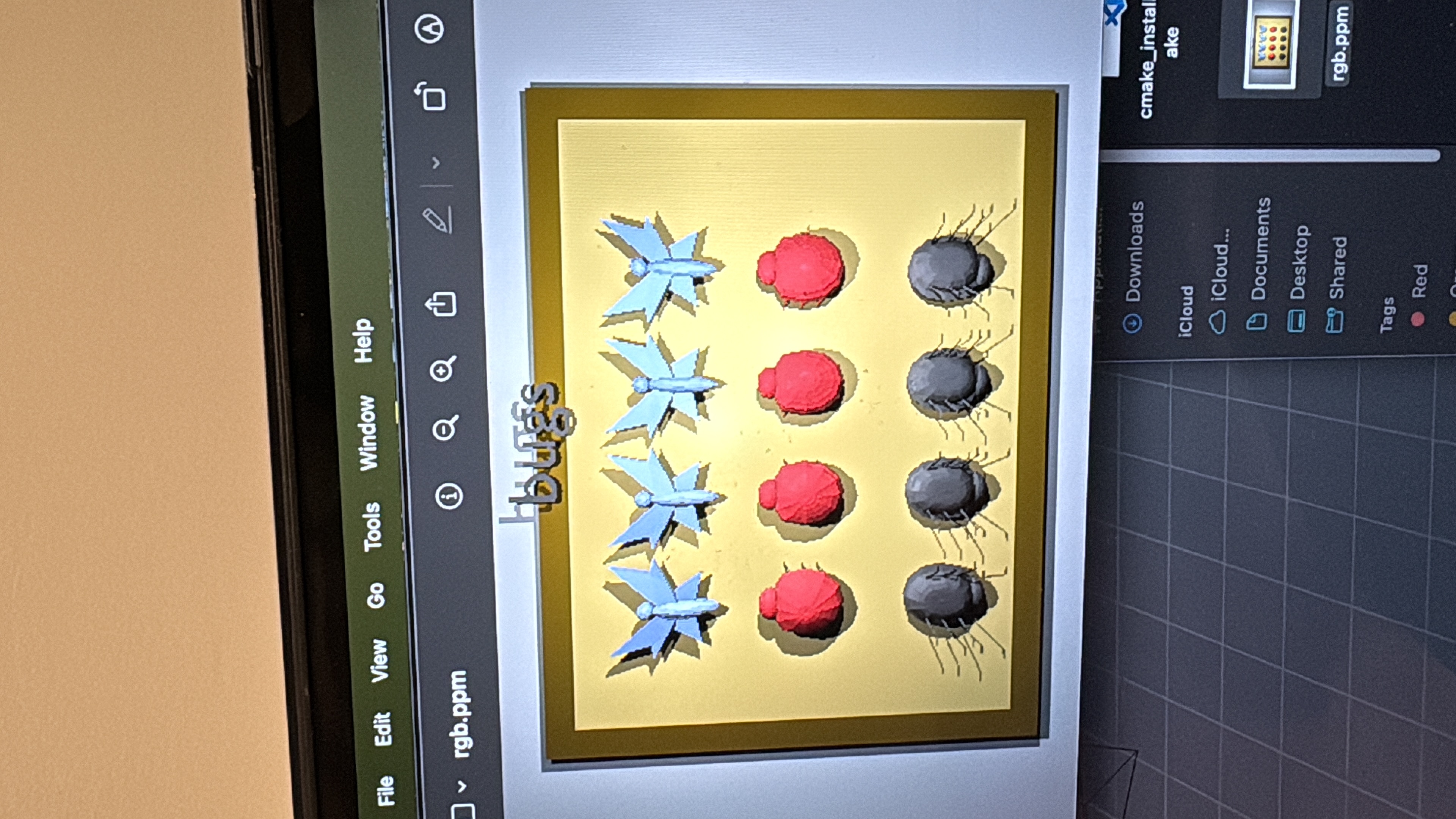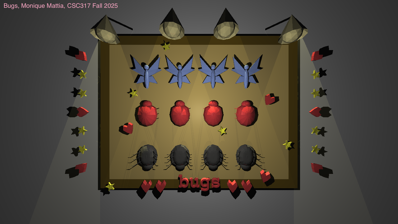 By Monique Carmen Elaine Mattia→I’ve produced a scene of bugs on display. Features added: