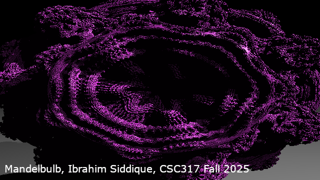 src/SDFObject.cpp(intersect method). This allows for rendering implicit surfaces defined by a distance function. - Mandelbulb SDF: Implemented the distance estimator for the Mandelbulb fractal (power 8) in