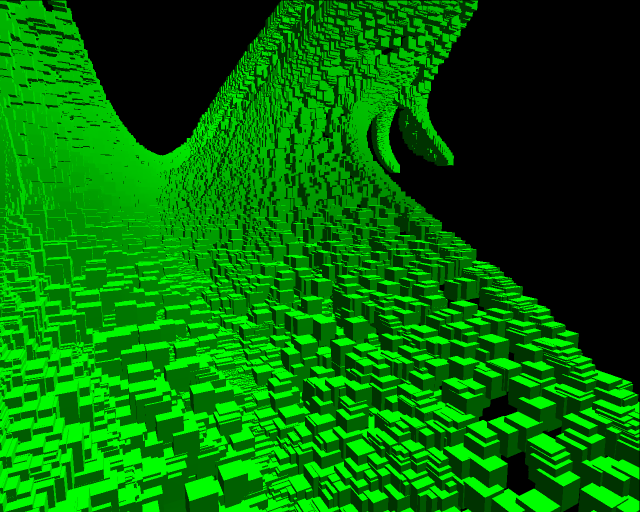 (April 27-28, 2001) The cubes in these images are centred on points sampled from strange attractors.