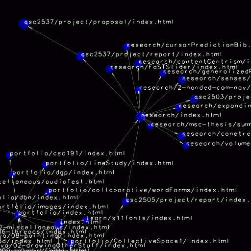 The graph visualized below corresponds to my website's structure. Scripts written in Bourne shell and Perl scan my website and produce a plain text description of the corresponding graph.