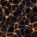 Then I break up the quad into two triangles which I then shade using Open GL. The intensity is proportional to the area of the triangle. This makes sense since in regions of high focus the triangles are smaller than in regions of defocusing. The alpha blending implemented in OpenGL takes care of blending all the triangles.The figure below shows the computed caustic texture map along with the fractal surface: